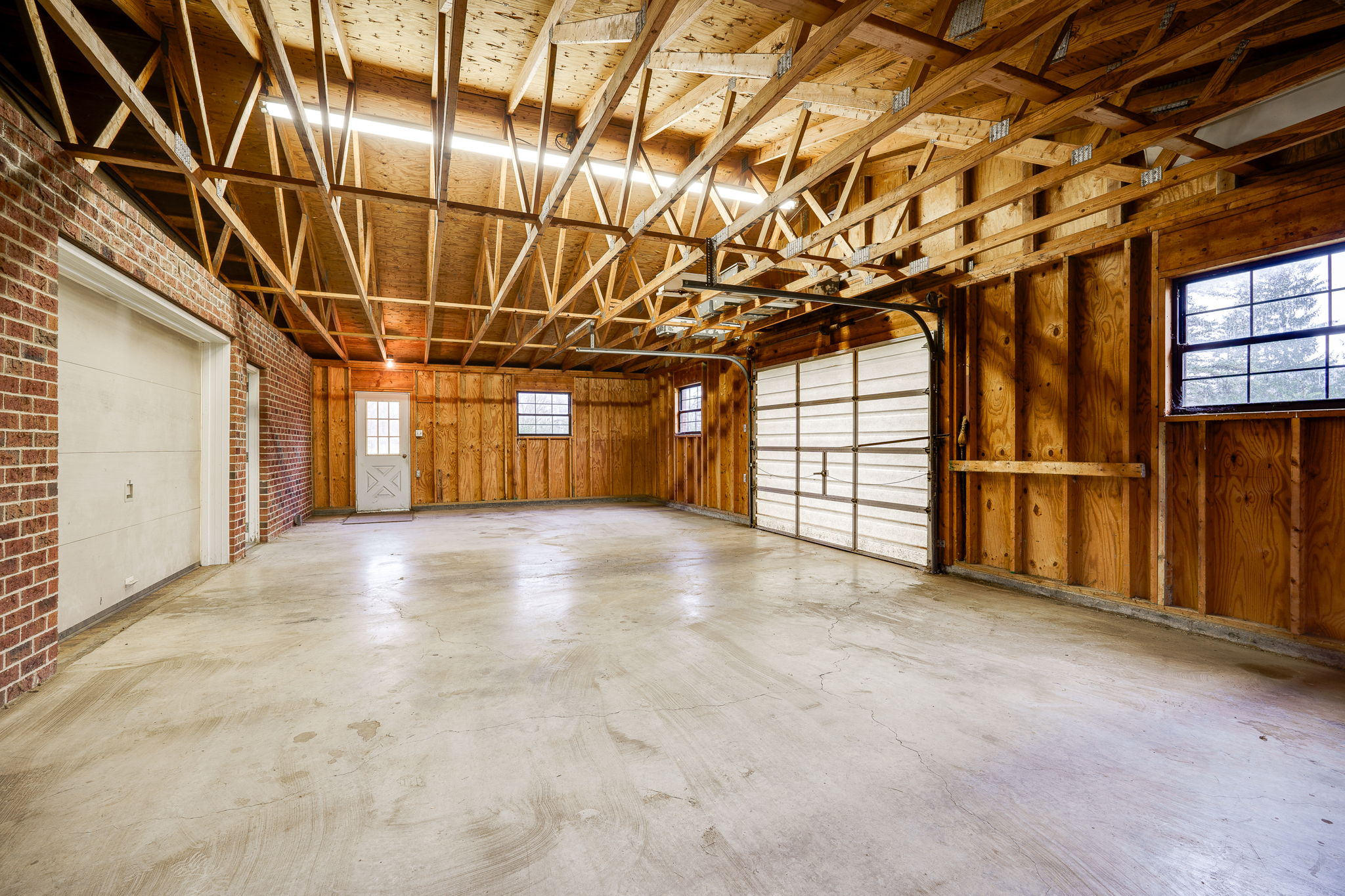 And there’s more outdoors. The home sits on a beautiful five-acre lot with rolling fields, surrounded by fencing. It features an impressive three-story brick building with four garage doors, ideal for storing cars or recreational use. Enjoy the views from the covered front porch, and use the two-car attached garage for even more storage space.